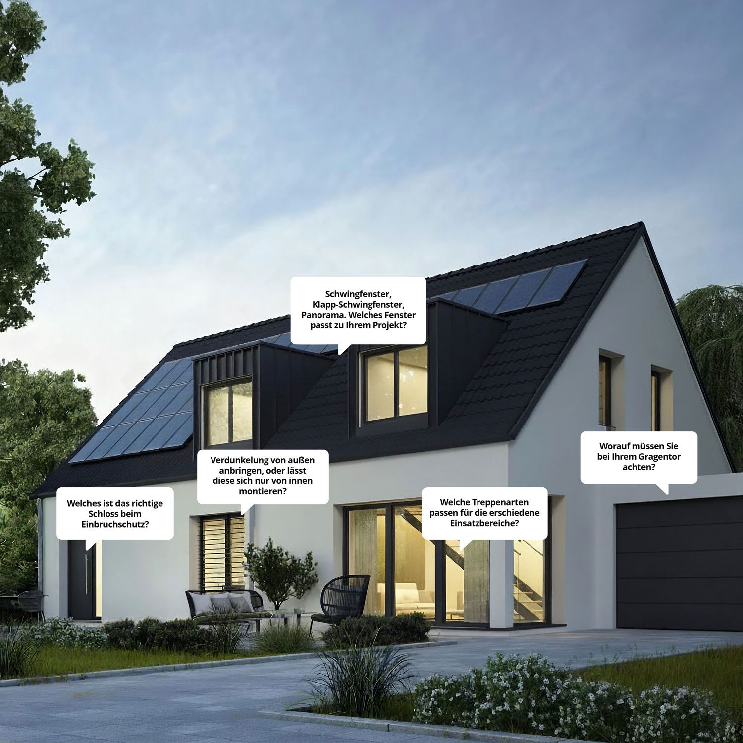 Unser digitales Nachschlagewerk rund um Türen, Tore, Treppen und Dachfenster. Verständlich erklärt, herstellerneutral und mit Bildern sowie Videos ergänzt – hier finden Sie alles Wissenswerte und Inspirationen für Ihr Bauprojekt.