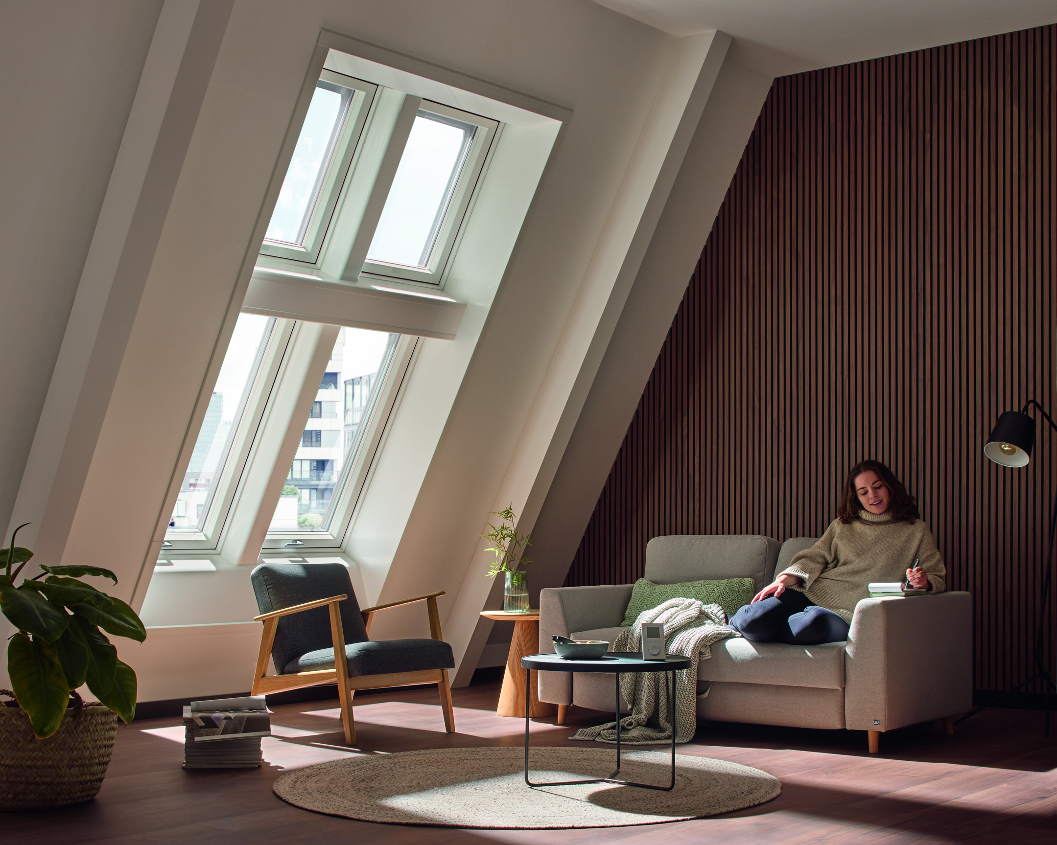 Dachgeschosszimmer mit Velux Panorama-Dachfenster