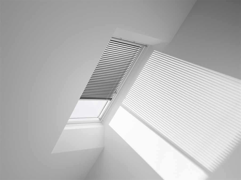 Dachfenster mit halb geschlossener Jalousie