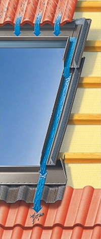 Ein Eindeckrahmen dichtet den Anschluss des Dachfensters ab und überdeckt die Verbindung zwischen Anschluss des Dachfensters und Dachstuhl. Damit ist ein sicherer Schutz vor Regen, Schnee und anderen Witterungseinflüssen garantiert. Der Eindeckrahmen ist ein unverzichtbares Bauteil bei einem Dachfenster. Bei der Auswahl des richtigen Eindeckrahmens sind vor allem zwei Faktoren wichtig: Zum einen entscheidet die Dacheindeckung, zum anderen die Dachneigung. Die Neigung ist entscheidend, da entlang des Eindeckrahmens Wasser vom Dach seitlich abgeführt wird. Hierbei entscheidet die Dachneigung über Fließgeschwindigkeit und Menge des abfließenden Wassers. Abhängig davon muss die Wasserführung des Eindeckrahmens gestaltet sein. Der Eindeckrahmen muss ebenfalls an das Material der Eindeckung angepasst ausgewählt werden, damit entlang des Abdeckrahmens kein Tropf- oder Kriechwasser in die Fensterkonstruktion gelangen und dort Schaden anrichten kann.