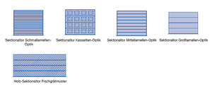 Wird der Sickenabstand der Torhöhe oder -breite angepasst, ergibt sich eine besonders gleichmäßige Optik. Die einzelnen Sektionen sind in verschieden Ansichten verfügbar. Je nach Höhe der Lamellen spricht man von Schmal-, Mittel- oder Großsicke. Ausführungen mit Kassettenfüllungen sind ebenso möglich wie Fischgrätmuster. Designorientiert sind Ausführungen mit Edelstahl-Applikationen und Verglasungselementen. Auch Kreationen nach individuellem Kundenwunsch sind für Garagentor-Hersteller in der Regel kein Problem.