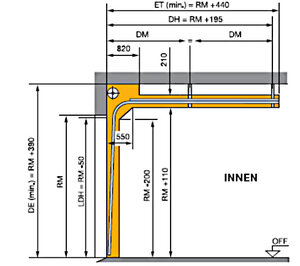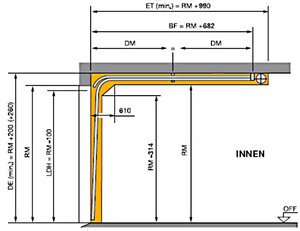 Je nach Sturzhöhe liegt das Torsionsfederpaket vorne am Sturz oder bei weniger Platz hinten an den Führungsschienen.