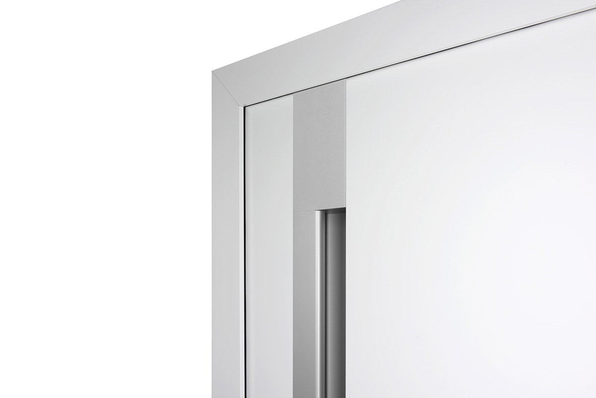 Der eckige Haustürrahmen ist flach und tritt optisch zurück. Er unterstreicht die Geradlinigkeit des Haustürelements.