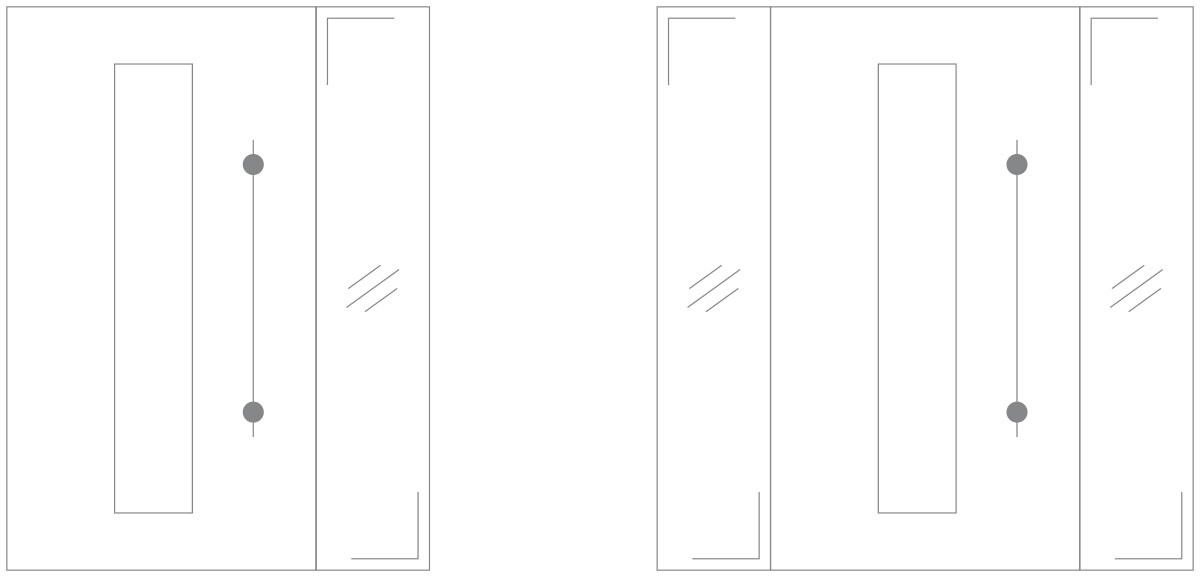 Zur Anbringung von Seitenteilen unterscheidet der Fachmann zwischen verschiedenen Varianten: Unter schloss-seitiges Seitenteil versteht man, dass das Seitenteil auf der Seite des Türschlosses angebracht ist. Ist das Seitenteil auf der gegenüberliegenden Seite angebracht, spricht man von einem band-seitigem Seitenteil. Der Name kommt daher, dass das Seitenteil an die Seite anschließt, wo das sogenannte Band der Tür liegt, also die Befestigung der Tür im Rahmen. Eine Haustüre kann auch zwei Seitenteile haben. Bei zwei Seitenteilen mit Verglasung gelangt besonders viel Licht in den Eingangsbereich.