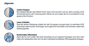 Betreten Sie Ihre Räume bequemer als je zuvor: Die Türdämpfung kann Türen sanft stoppen, leise schließen und komfortabel offenhalten. Damit gehören knallende Türen, eingeklemmte Finger und Macken in Wänden oder Möbeln der Vergangenheit an. Dank der kompakten Maße lässt sich die beidseitige Einzugsdämpfung in nahezu jedes Standardtürblatt durch einen Fachbetrieb einbauen, ist kaum zu sehen und passt sich damit auch höchsten Designansprüchen an. Durch eine Einzugsdämpfung vereinen Sie Funktionalität, Sicherheit und Ästhetik – und erleben einen ganz neuen Türkomfort in den eigenen vier Wänden.