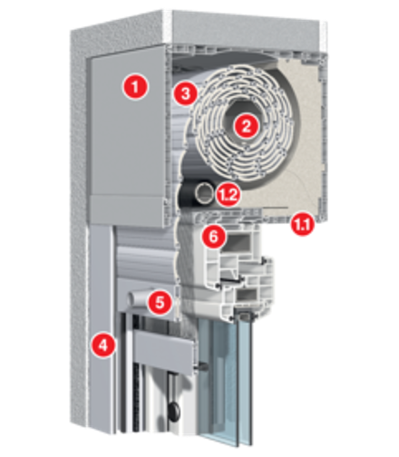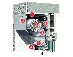- Montage: Rollladen, Rollladenkasten und Fenster bilden eine feste Einheit und werden zusammen montiert.