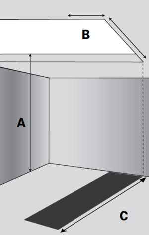 Wichtig ist zudem die richtige Größe der Deckenöffnung (B) für die Treppe zu bemessen: Ist diese zu klein, werden Sie später beim Hinaufgehen mit dem Kopf an die Decke anstoßen oder die Treppe nicht richtig montieren können. Dazu entscheidend ist der Neigungswinkel der Treppe sowie die lichte Raumhöhe. Als Faustregel gilt, dass die Deckenöffnung so groß sein muss, dass auf allen Treppenstufen mindestens 2 Meter nach oben Platz sein muss.